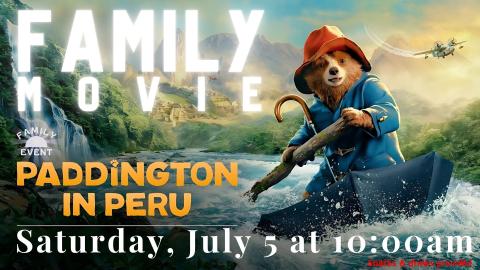 Family Movie: (Family) Saturday, July 5, 10:30 am -12:30 pm. Cool off at the library this summer with a fun, free family movie - Paddington in Peru (PG, 2025) . Tea and snacks provided!